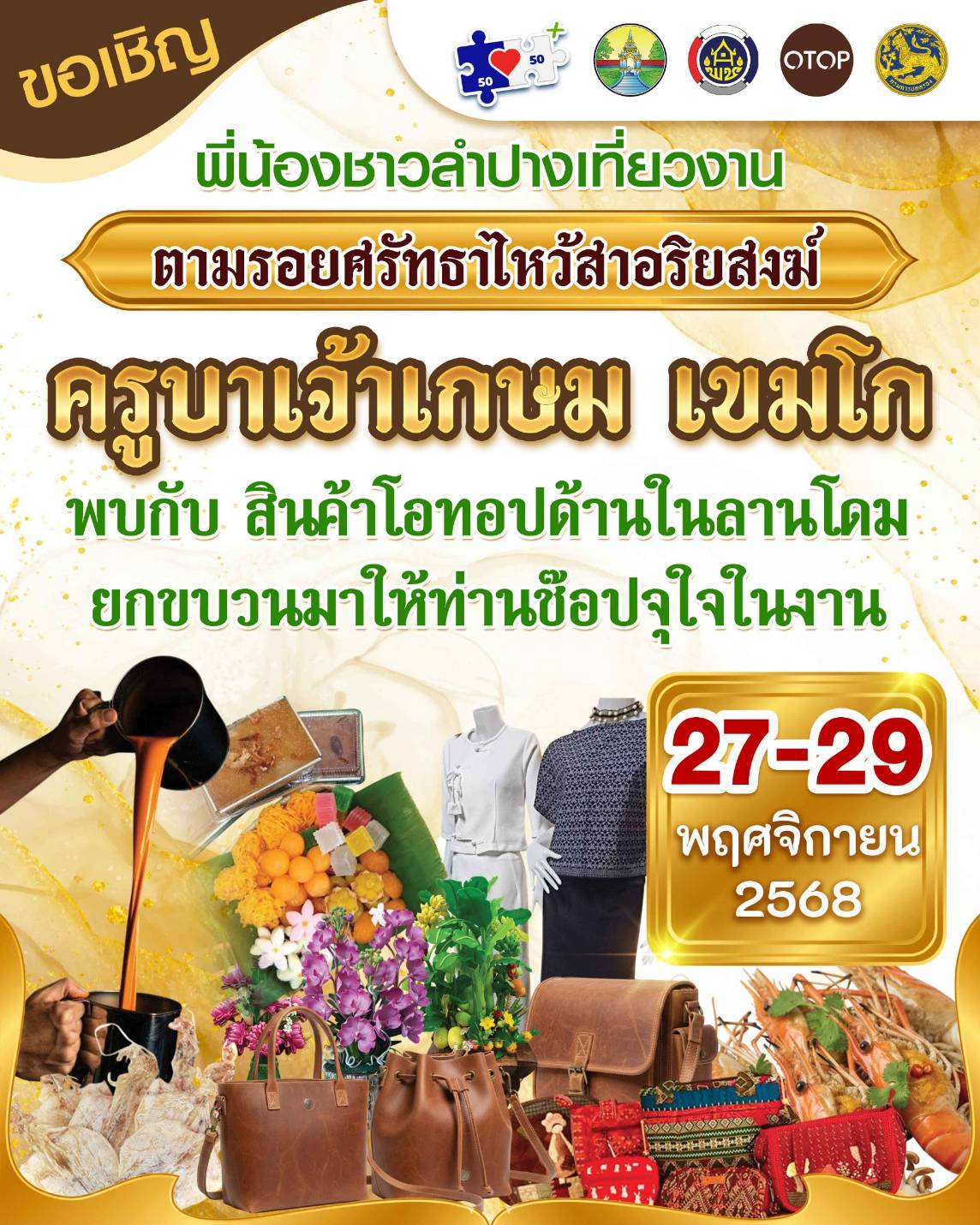 พี่น้องชาวลำปางและพุทธศาสนิกชนทั่วไทย งานประเพณี “งานบุญตามรอยศรัทธา ไหว้สาอริยสงฆ์เจ้า หลวงพ่อเกษม เขมโก” ประจำปี ๒๕๖๘ เพื่อน้อมรำลึกถึงครบรอบ ๑๑๓ ปี ชาตกาลของพระอริยสงฆ์เจ้าผู้เป็นที่เคารพสักการะยิ่ง