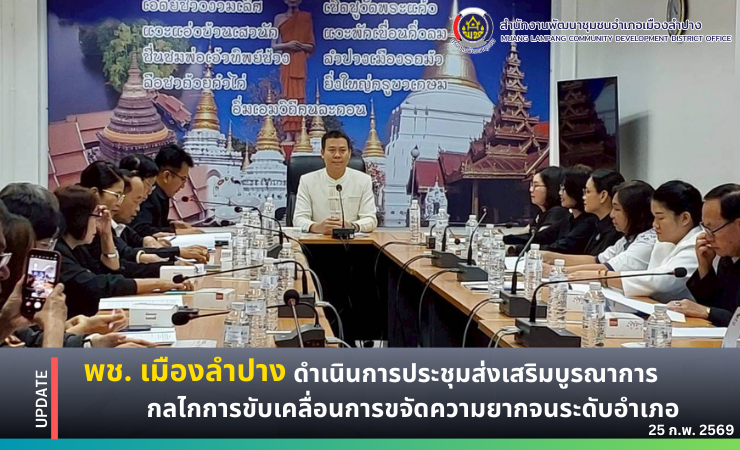 🔶️พช. เมืองลำปาง : ดำเนินการประชุมส่งเสริมบูรณาการกลไกการขับเคลื่อนการขจัดความยากจนระดับอำเภอ